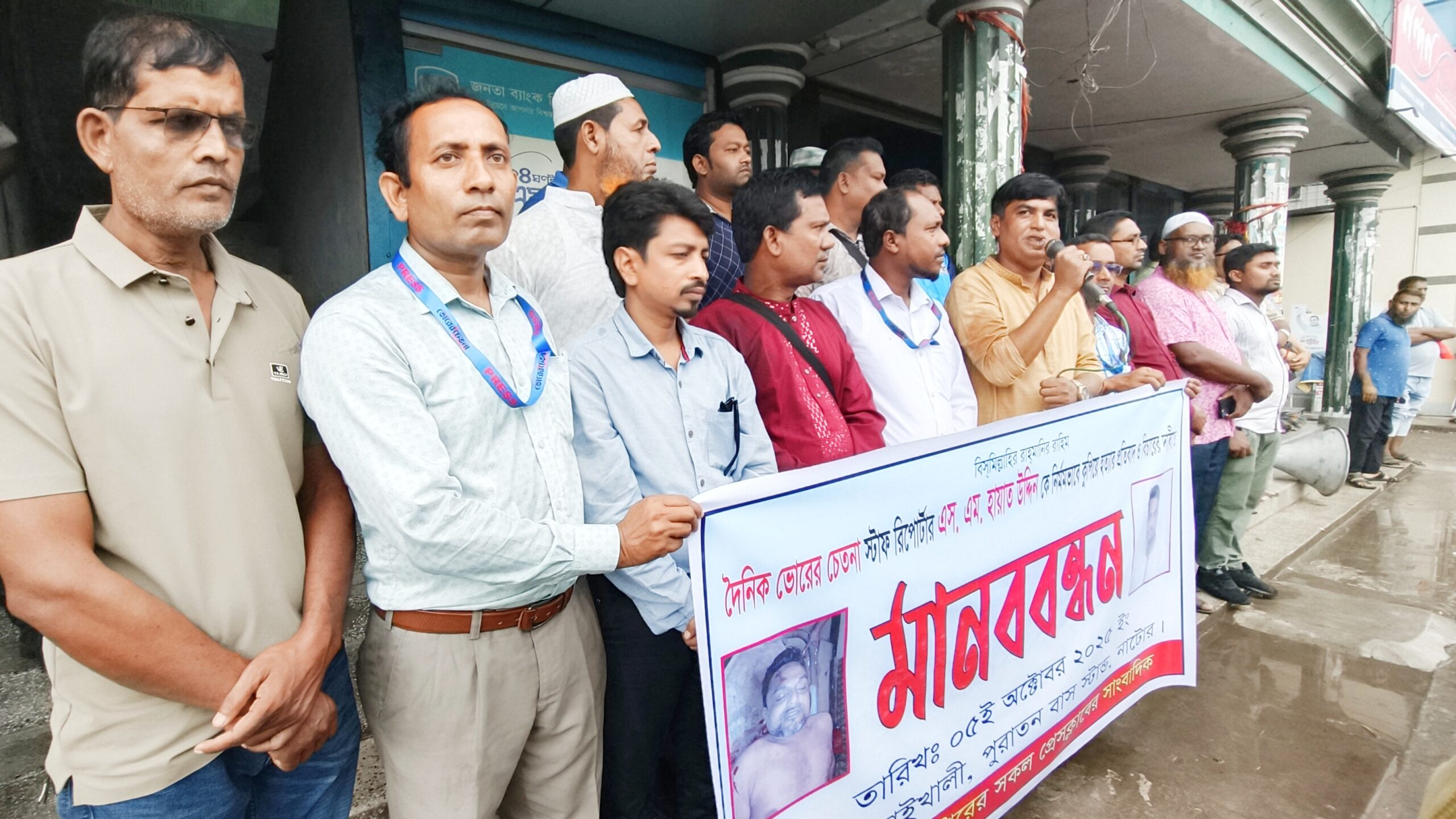সাংবাদিক এসএম হায়াত উদ্দিনকে কুপিয়ে হত্যার প্রতিবাদ ও বিচারের দাবিতে নাটোরে মানববন্ধন